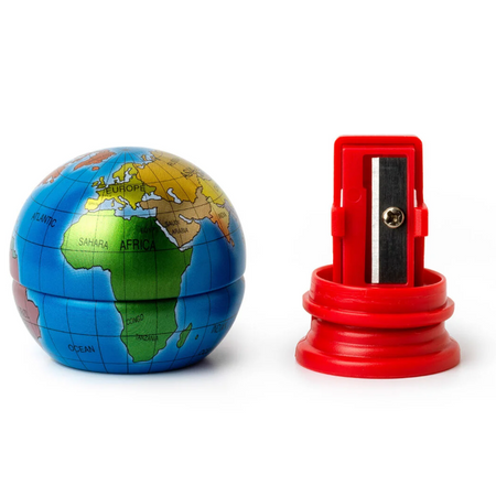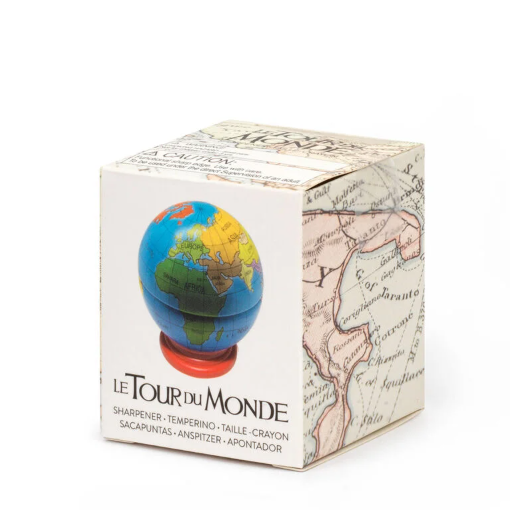 Viajámos pelo mundo com o afia-lápis Legami Le Tour du Monde. Com a forma de um globo numa base plana para que o possa colocar na sua secretária, este divertido afia-lápis permite-lhe praticar os seus conhecimentos de geografia e sonhar com a sua próxima viagem enquanto afia os lápis.