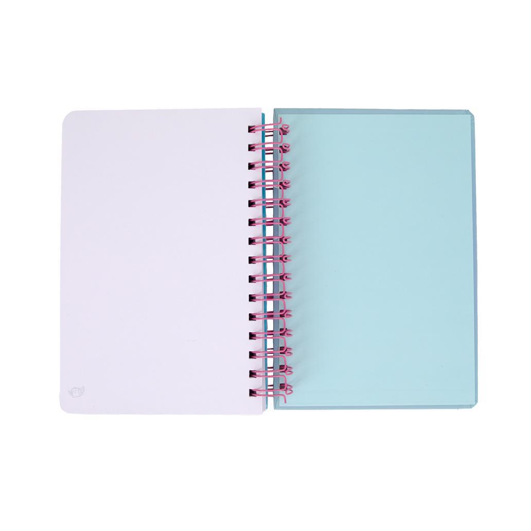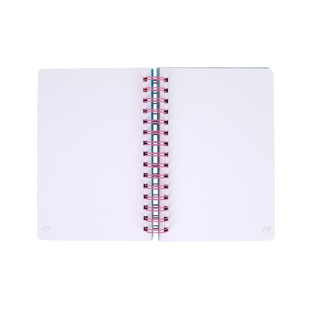 Caderno em tamanho A5 com encadernação em espiral e 240 páginas brancas no interior. A capa inclui uma peça do design com volume, fabricada em memory foam (anti-stress), que lhe confere um toque original e diferenciador. Produzido com papel certificado FSC, proveniente de florestas geridas de forma responsável.