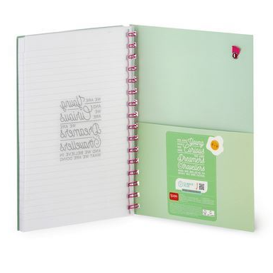 Dê um toque de energia à sua escrita com o Caderno Espiral Legami Egg com páginas pautadas - Grande. Com encadernação em espiral, formato A5 e páginas destacáveis, é perfeita para anotações, listas e trabalhos de casa. Utilize-o em casa, na escola ou no escritório para aproveitar ao máximo o seu dia. 200 páginas pautadas destacáveis (7 mm) Papel branco de alta qualidade 100 g/m² Fecho elástico e bolso traseiro para documentos. O papel possui certificação FSC® (FSC-C154586), proveniente de florestas bem geridas, florestas certificadas FSC® e outras fontes controladas. C 15,5 x A 21 cm