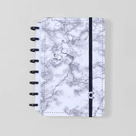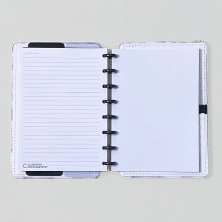 Podes ter o teu caderno inteligente mármore branco personalizado ao teu estilo: tirar e recolocar capas, folhas, trocar os discos e usar diversos acessórios.