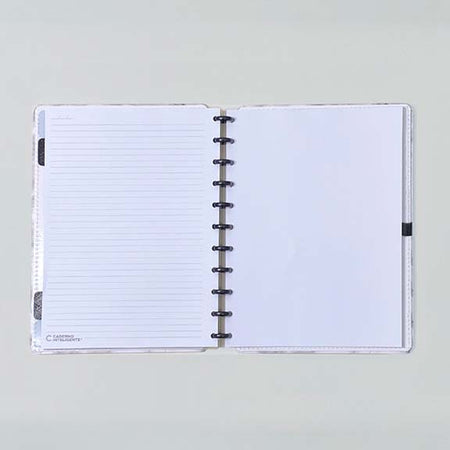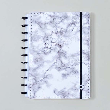 Podes ter o teu caderno inteligente mármore branco personalizado ao teu estilo: tirar e recolocar capas, folhas, trocar os discos e usar diversos acessórios.
