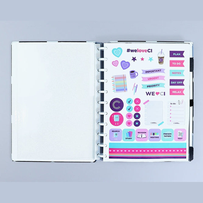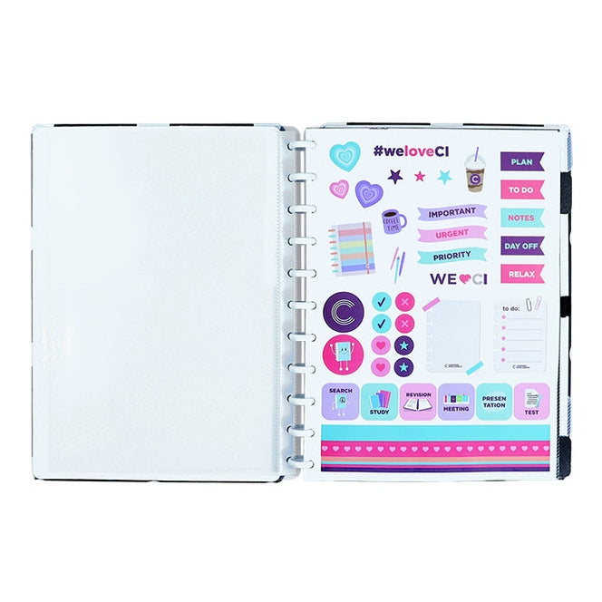 Podes ter o teu caderno inteligente personalizado ao teu estilo: tirar e recolocar capas, folhas, trocar os discos e usar diversos acessórios.