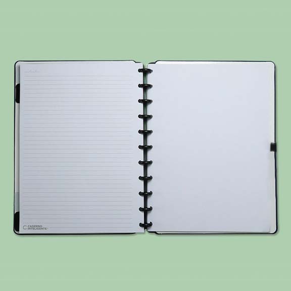 Podes ter o teu caderno inteligente personalizado ao teu estilo: tirar e recolocar capas, folhas, trocar os discos e usar diversos acessórios.
