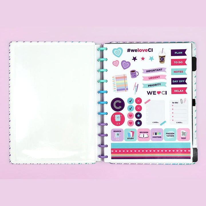 Podes ter o teu caderno inteligente personalizado ao teu estilo: tirar e recolocar capas, folhas, trocar os discos e usar diversos acessórios.