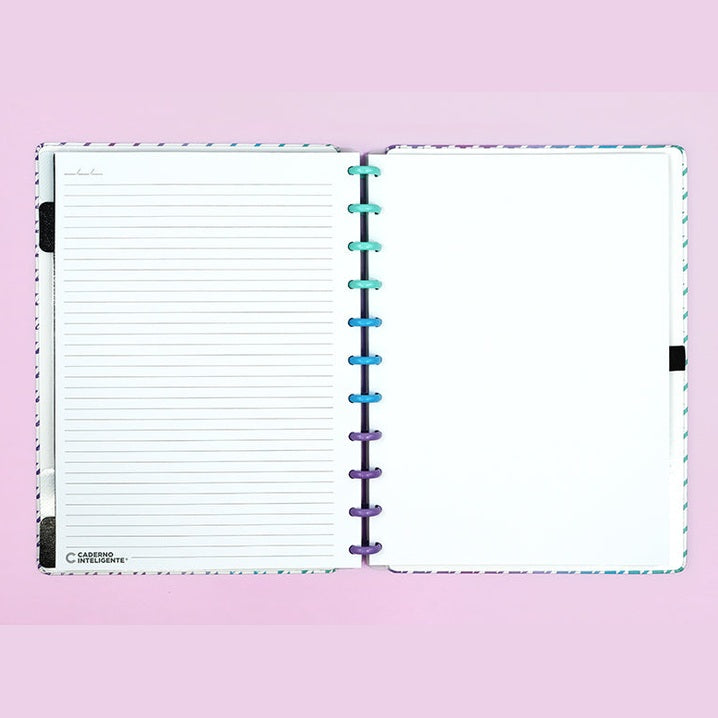 O caderno que tiras e colocas as folhas quando quiseres! O Caderno Inteligente London Grande, da coleção City Lights, é o caderno ideal para a faculdade e para quem precisa de escrever muito e ter espaço para todas as anotações, planos, apontamentos escolares e uma melhor organização da matéria. Por ser um pouco grande talvez não seja o caderno ideal para se levar para todos os lugares, mas é ótimo para quem está na escola.