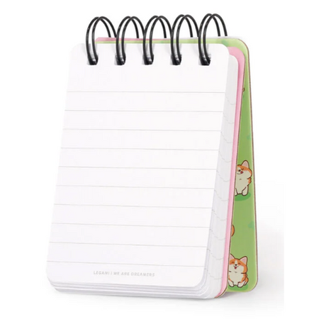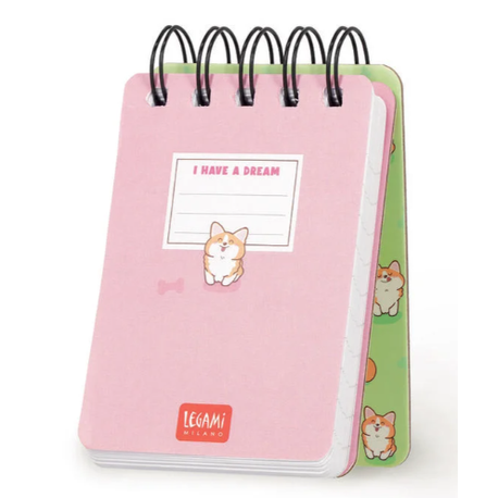 O Bloco de Notas Espiral A7 Pautado Corgi Legami é perfeito para quem gosta de apontar ideias em qualquer lugar.