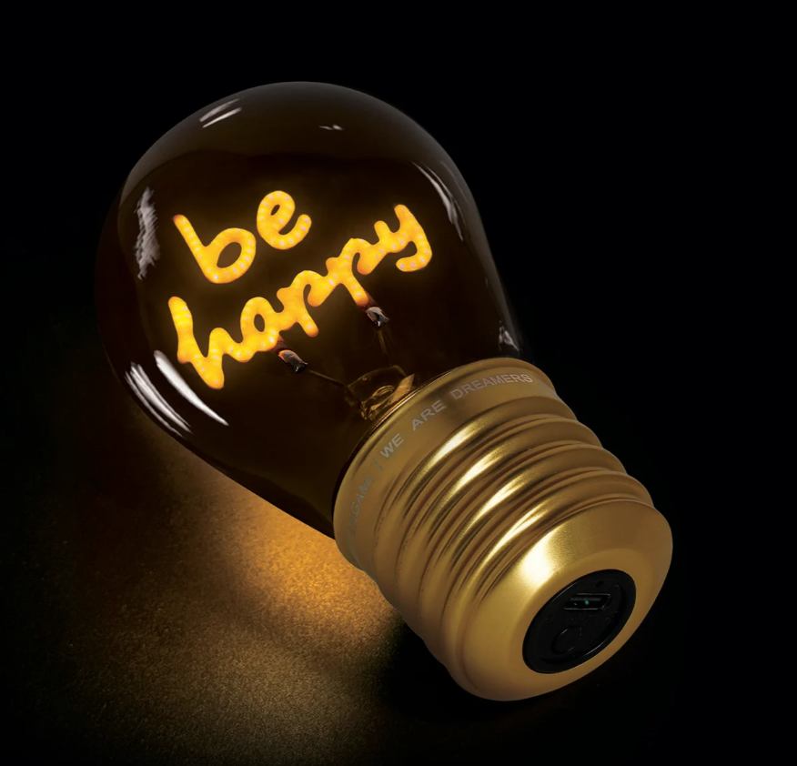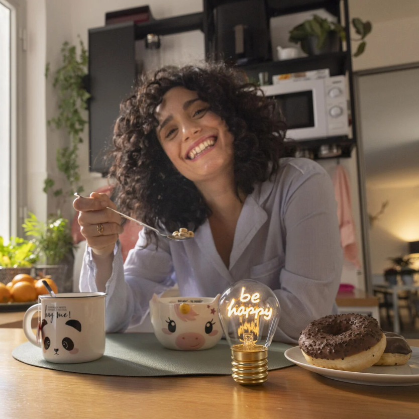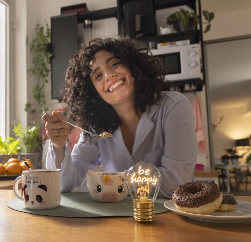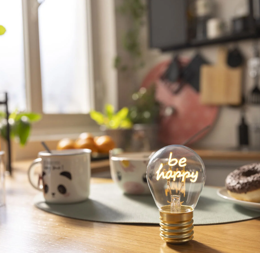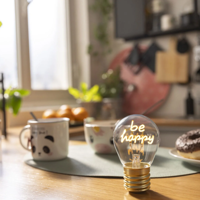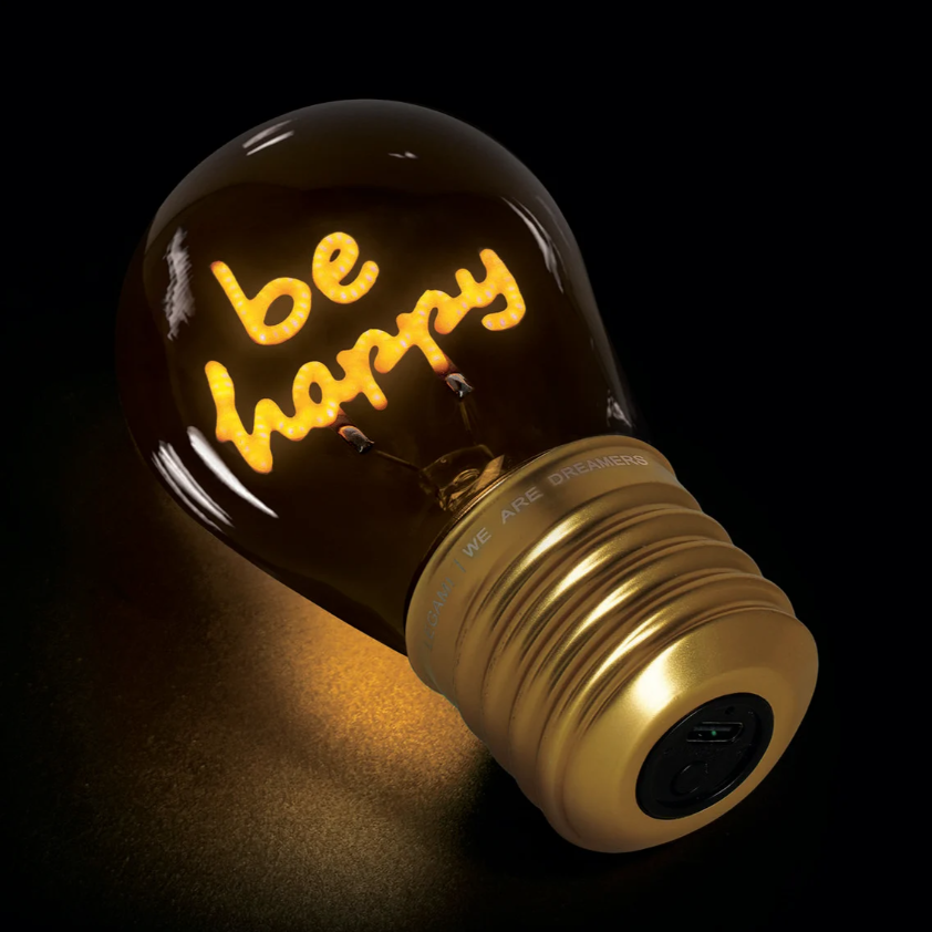 Quer ver os seus dias sob uma nova luz? O Candeeiro de Mesa em Formato de Candeeiro da Legami - Bulb Fiction - "Be Happy" é a forma mais brilhante de renovar a sua mesa e dar aquele toque especial de luz e design.