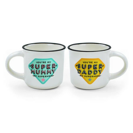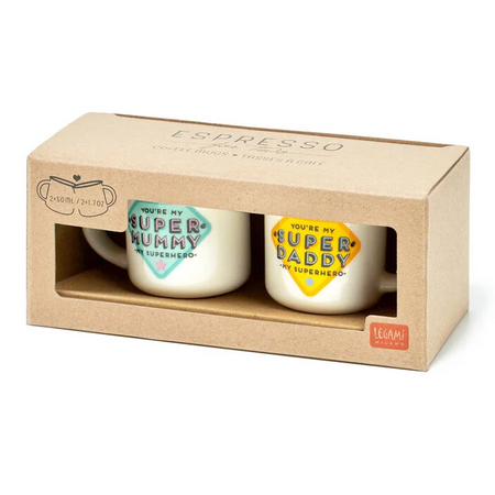 Deixe suas manhãs ainda mais doces com as canecas de café Legami Espresso para Dois - Super Mamãe / Super Papai em porcelana New Bone China . Este par de canecas de 50 ml se complementa, sendo a maneira perfeita de expressar seus sentimentos à sua cara-metade.
