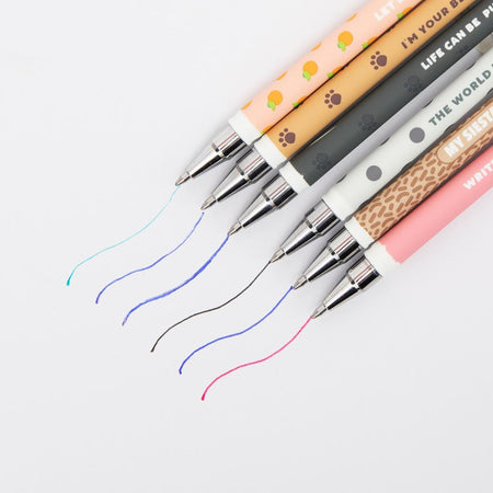 As canetas utilizam tintas apagáveis nas cores rosa, preto, verde e azul, sendo perfeitas para escola, trabalho ou para oferecer. O estojo é fácil de limpar — basta passar um pano húmido para remover eventuais manchas.