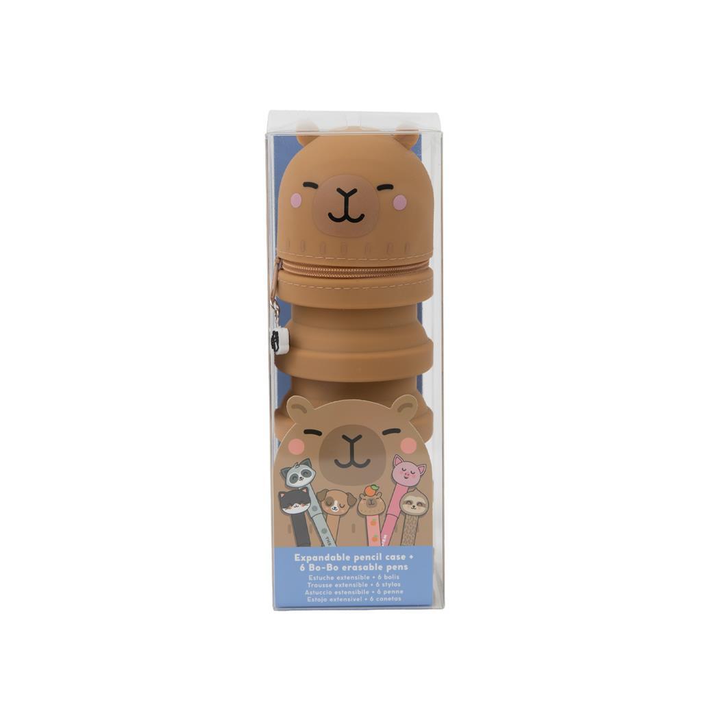 Conjunto 6 canetas apagáveis Bo-Bo + estojo de silicone Capivara Mr.wonderful