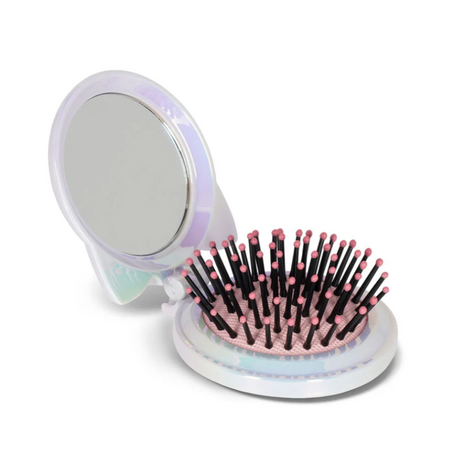 Dê um toque de elegância ao seu look com a escova de cabelo Legami Nice Hair - Kitty com espelho. Este prático acessório de beleza dobra-se completamente, permitindo guardá-lo na mala ou deixá-lo em cima da mesa quando não está a ser utilizado, e inspirar-se com a bela ilustração no verso.