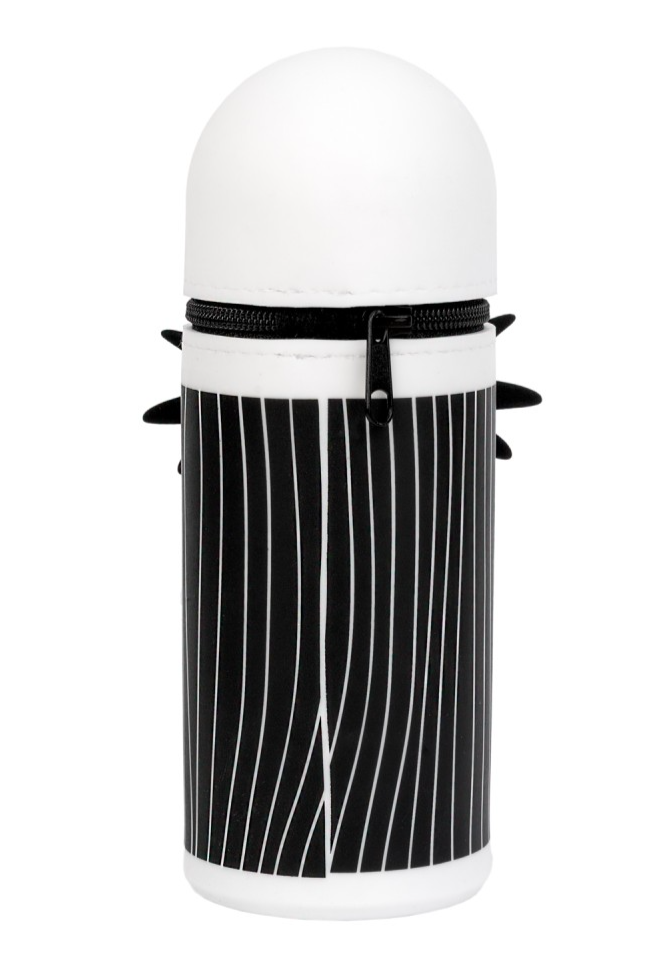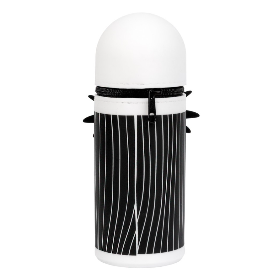 Estojo 3D fabricado em silicone. Possui fecho de correr e puxador personalizado. A sua parte inferior é extensível, o que permite aumentar tanto o seu tamanho como a sua capacidade. Medidas: 7 x 21 cm aproximadamente.