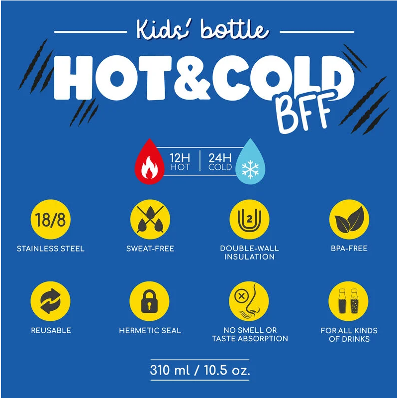 Tudo fica melhor quando o faz com os seus amigos. Até mesmo lembrar-se de beber água! É exatamente para isso que serve a Garrafa de Vácuo Infantil Legami - Quente e Frio BFF - Girafa - uma garrafa de vácuo reutilizável para os mais pequenos, para tornar cada gole mais colorido e saboroso! Com o seu fecho hermético e a sua composição leve e resistente em aço inoxidável, mantém as bebidas quentes aquecidas até 12 horas e as bebidas frias até 24 horas!
