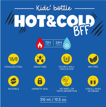 Tudo fica melhor quando o faz com os seus amigos. Até mesmo lembrar-se de beber água! É exatamente para isso que serve a Garrafa de Vácuo Infantil Legami - Quente e Frio BFF - Girafa - uma garrafa de vácuo reutilizável para os mais pequenos, para tornar cada gole mais colorido e saboroso! Com o seu fecho hermético e a sua composição leve e resistente em aço inoxidável, mantém as bebidas quentes aquecidas até 12 horas e as bebidas frias até 24 horas!