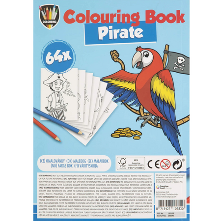 Livro para Colorir Pirata com 64 páginas cheio de aventuras e diversão, ideal para estimular a criatividade e a imaginação das crianças. Com ilustrações temáticas de piratas, navios, mapas do tesouro e ilhas misteriosas, este livro para colorir promove a concentração, a coordenação motora e o gosto pelas atividades criativas. Perfeito para momentos de entretenimento em casa, viagens ou como prenda educativa para crianças que adoram histórias de piratas e aventuras no mar.