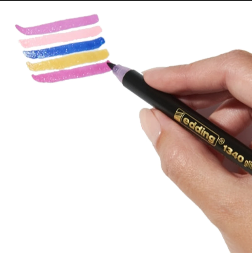 Perfeito para quem gosta de personalizar, decorar e dar brilho extra a cada detalhe, o Edding 1340 Glitter é uma excelente escolha tanto para uso criativo como escolar ou artístico.