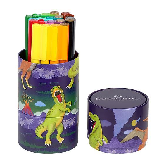 Marcadores Faber-Castell Connector em Caixa Dinossauro - 20 Unidades