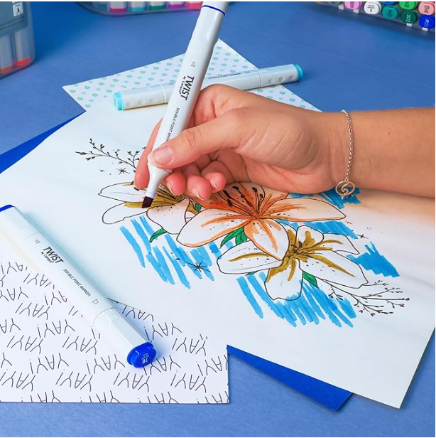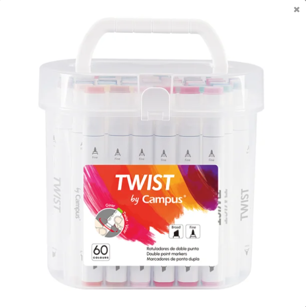 Os Marcadores Ponta Dupla Twist Campus (60 unidades) são ideais para artistas, ilustradores, estudantes e criativos que procuram qualidade profissional e versatilidade num só conjunto. Com tinta à base de álcool, garantem cores intensas, excelente cobertura e resultados duradouros.