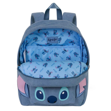 Mochila Roy Lilo e Stitch Sight. Lilo e Stitch. Mochila urbana com um compartimento. Corpo externo em veludo cotelê com um bolso frontal com zíper e dois bolsos laterais abertos. Forro interno com compartimento acolchoado para dispositivos eletrônicos.