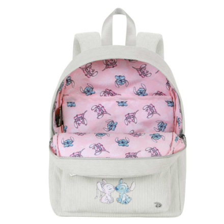Mochila Roy Lilo e Stitch Tender. Lilo e Stitch. Mochila urbana com um compartimento. Corpo externo em veludo cotelê com um bolso frontal com zíper e dois bolsos laterais abertos. Forro interno com compartimento acolchoado para dispositivos eletrônicos.
