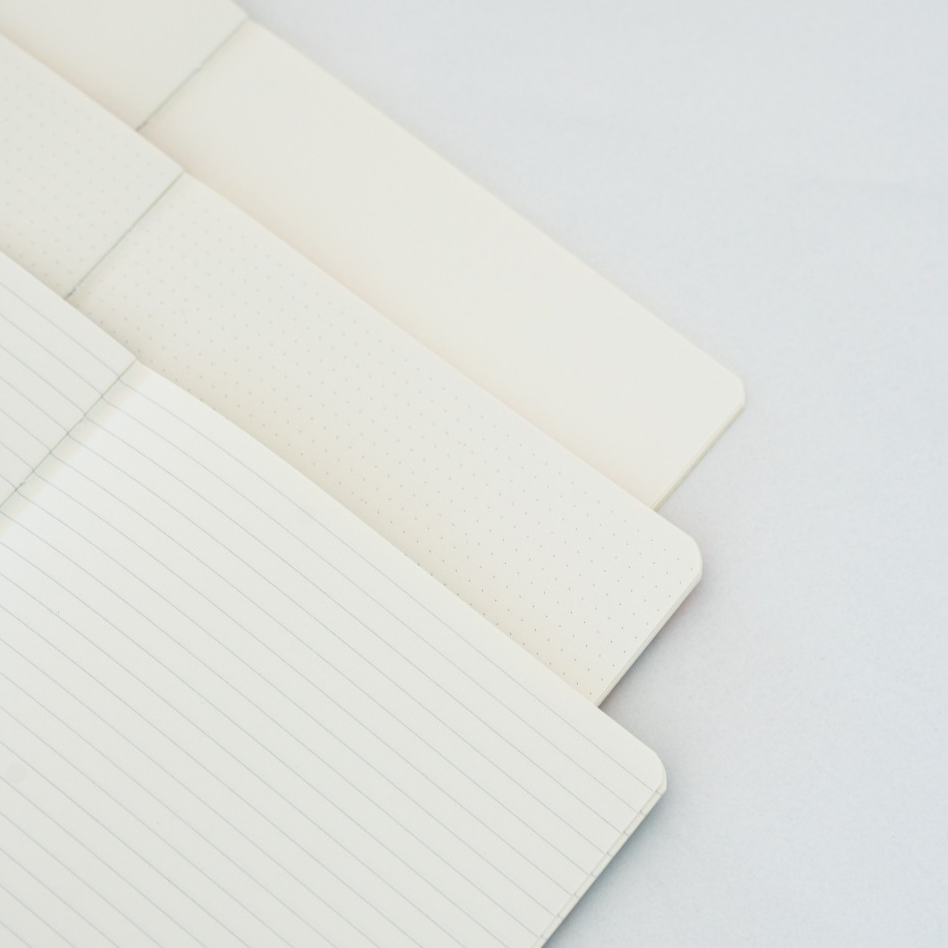 Conjunto de 3 cadernos A5 de capa mole, com três desenhos diferentes. Cada caderno mede 14,8 x 21 cm e é fabricado com uma capa de papel impresso de 300 g/m² no exterior e 80 g/m² no interior. Cada caderno tem 32 folhas (64 páginas) e tem um tipo de interior: linhas, bullet e branco.