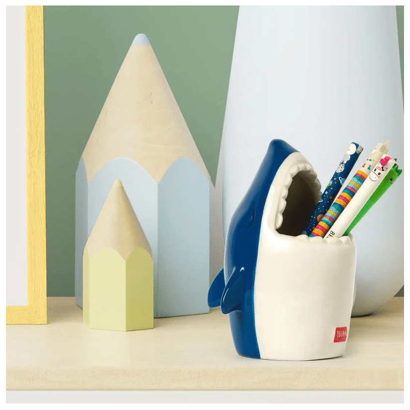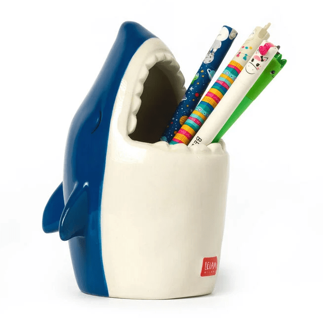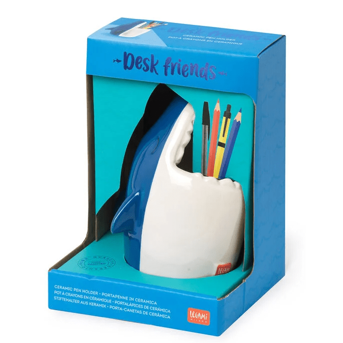 Explore o azul profundo sem sair da sua secretária com o porta-canetas de cerâmica Legami Desk Friends - Shark. Este acessório elegante manterá as suas canetas organizadas e fará companhia enquanto planeia o seu próprio ataque de tubarão.