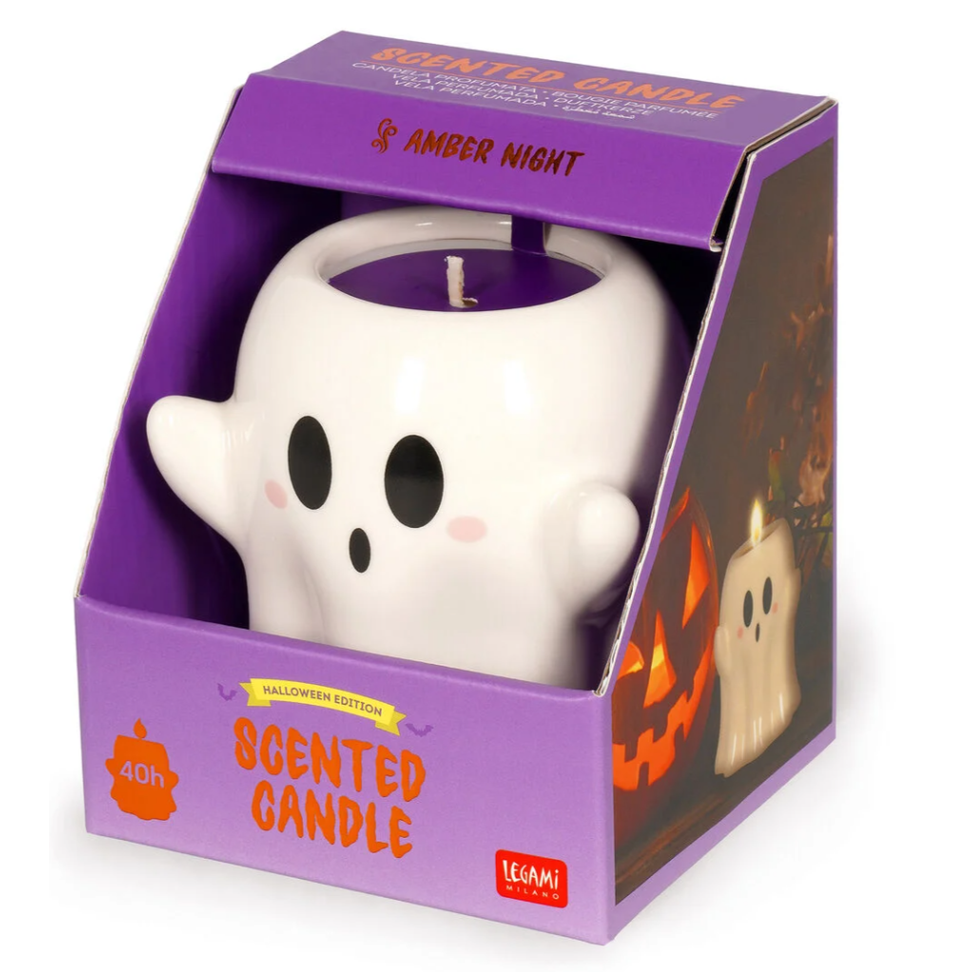 Está a sentir o espírito do Halloween? Graças à Vela Aromática Fantasma da Legami! As notas de âmbar envolvem-no na noite mais assustadora do ano, num recipiente de cerâmica decorado à mão verdadeiramente... assustador!