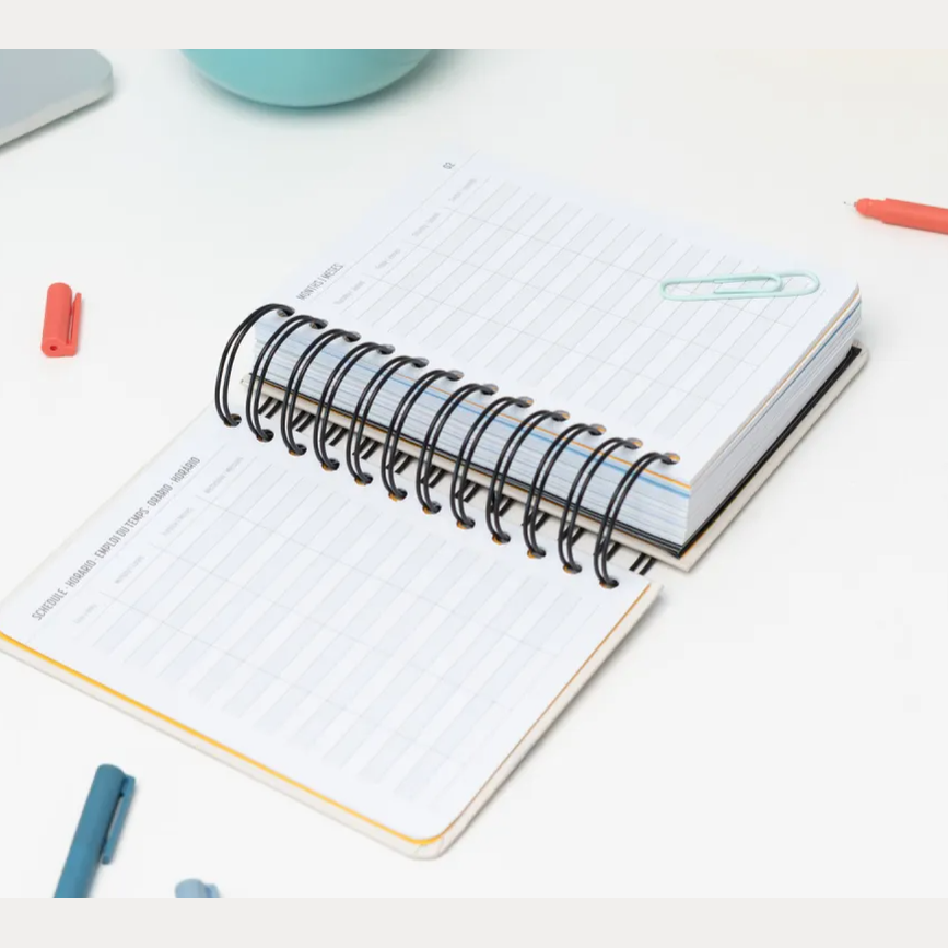 Agenda anual de 12 meses de janeiro a dezembro 2026 dia página. Mede 11,4 x 16 cm. Inclui capa rígida de 1,5 mm forrada em papel de 125 g/m2, encadernação tipo wire-o com banda elástica, interior genérico às riscas, 8 folhas separadoras, 16 ilustrações, 2 páginas de autocolantes genéricos, bolso interior e faixa destacável com marcadores de páginas e régua no verso. Contém 348 páginas de 100 g/m2. Idiomas: inglês, espanhol, francês, italiano e português.