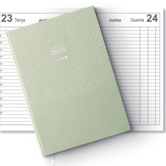 Agenda diária A6 2026 FIRMO Micro Spot verde oliva