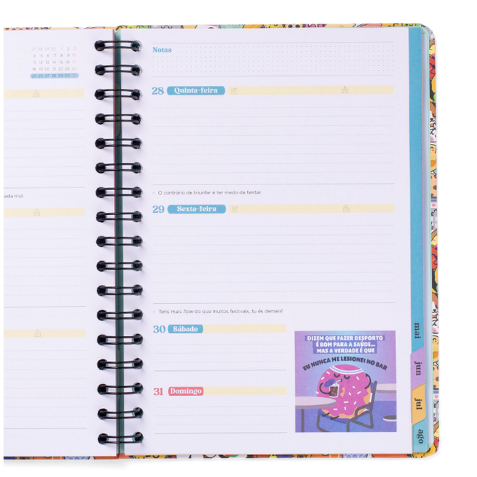 - Agenda estilo Wonder da Mr. Wonderful, com organização semanal, vai de setembro de 2025 a finais de agosto de 2026.