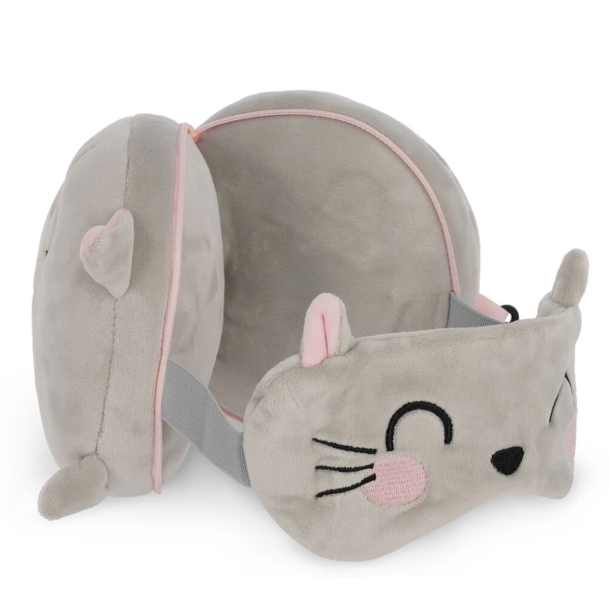 Almofada de viagem gatinho com máscara de dormir - Legami