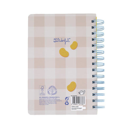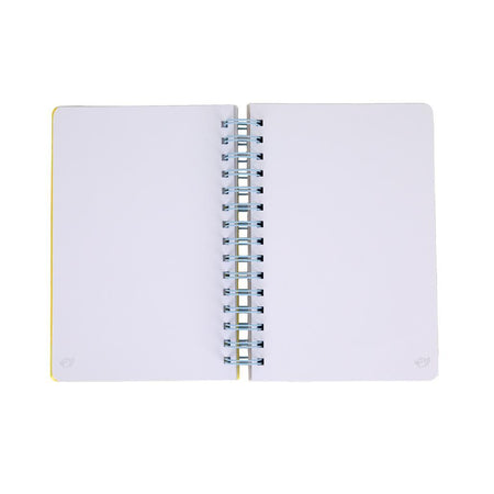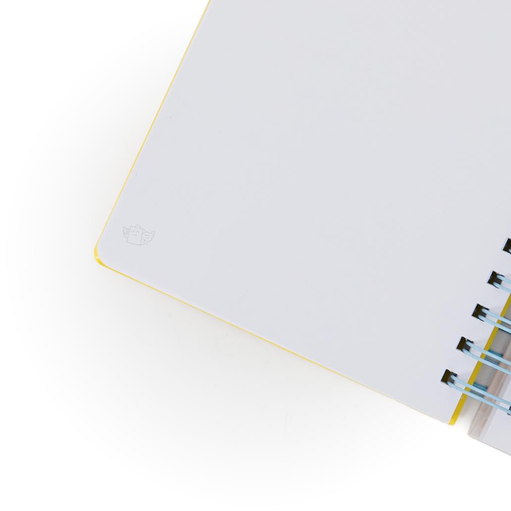 Caderno em tamanho A5 com encadernação em espiral e 240 páginas brancas no interior. A capa inclui uma peça do design com volume, fabricada em memory foam (anti-stress), que lhe confere um toque original e diferenciador. Produzido com papel certificado FSC, proveniente de florestas geridas de forma responsável.
