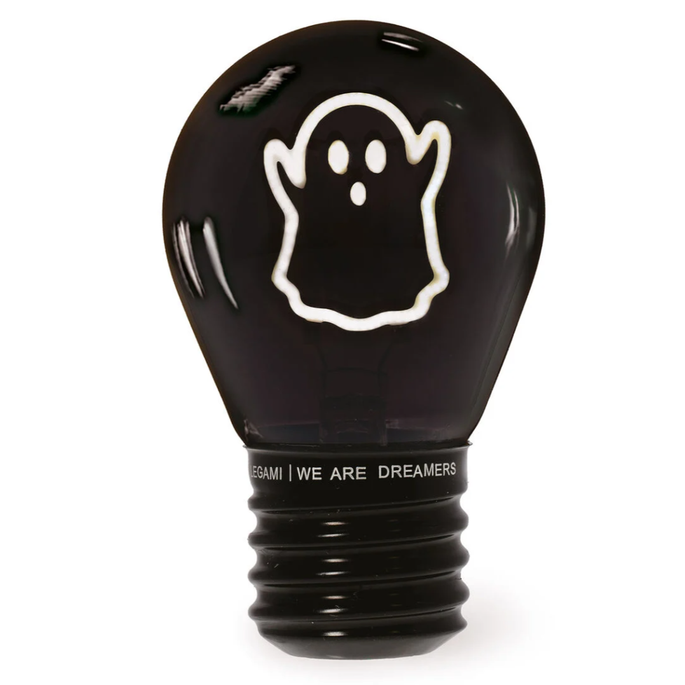 Trocar histórias de fantasmas exige efeitos de luz assustadores: o candeeiro em forma de lâmpada - Bulb Fiction - Ghost da Legami tem um pequeno fantasma iluminado escondido no seu interior, pronto para brilhar intensamente na noite mais escura. Sem fios e recarregável, é um momento de iluminação para as suas festas de Halloween!