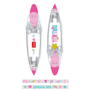 Com a Caneta de Fita para Decoração - Deco Tape da Legami, pode realmente tornar tudo mais bonito! Encha diários, cartões e cadernos com o unicórnio e cores, e não se contenha: tem 4 metros de fita para mostrar exatamente como se sente!