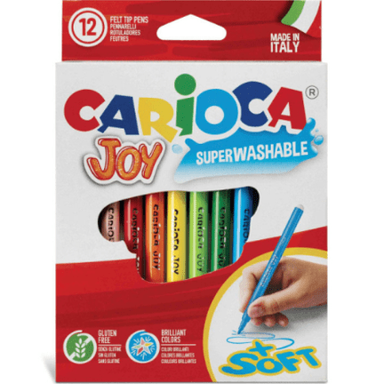 Os Marcadores Laváveis Carioca Joy Blister c/12 são ideais para estimular a criatividade das crianças com total segurança. Com 12 cores vivas e alegres, estes marcadores possuem tinta lavável, fácil de remover da pele e da maioria dos tecidos, sendo perfeitos para uso escolar e atividades criativas em casa.