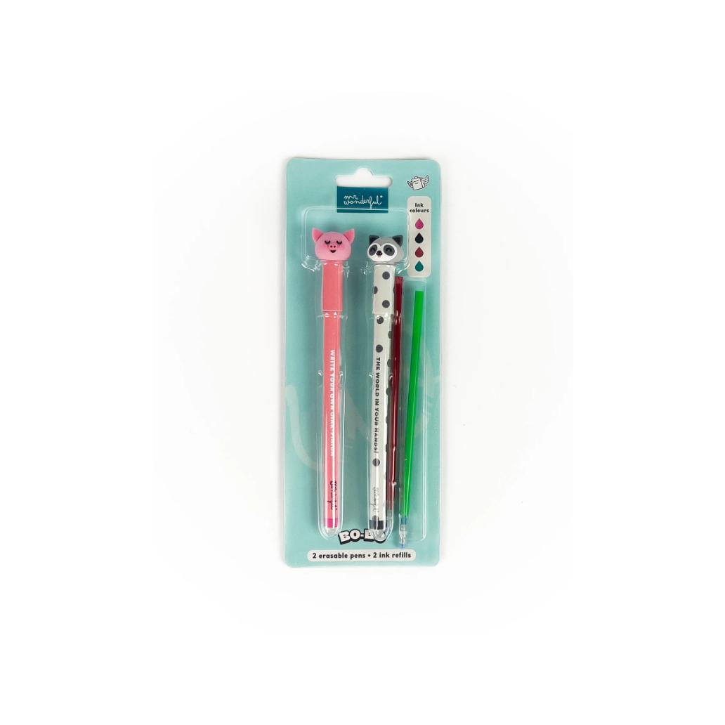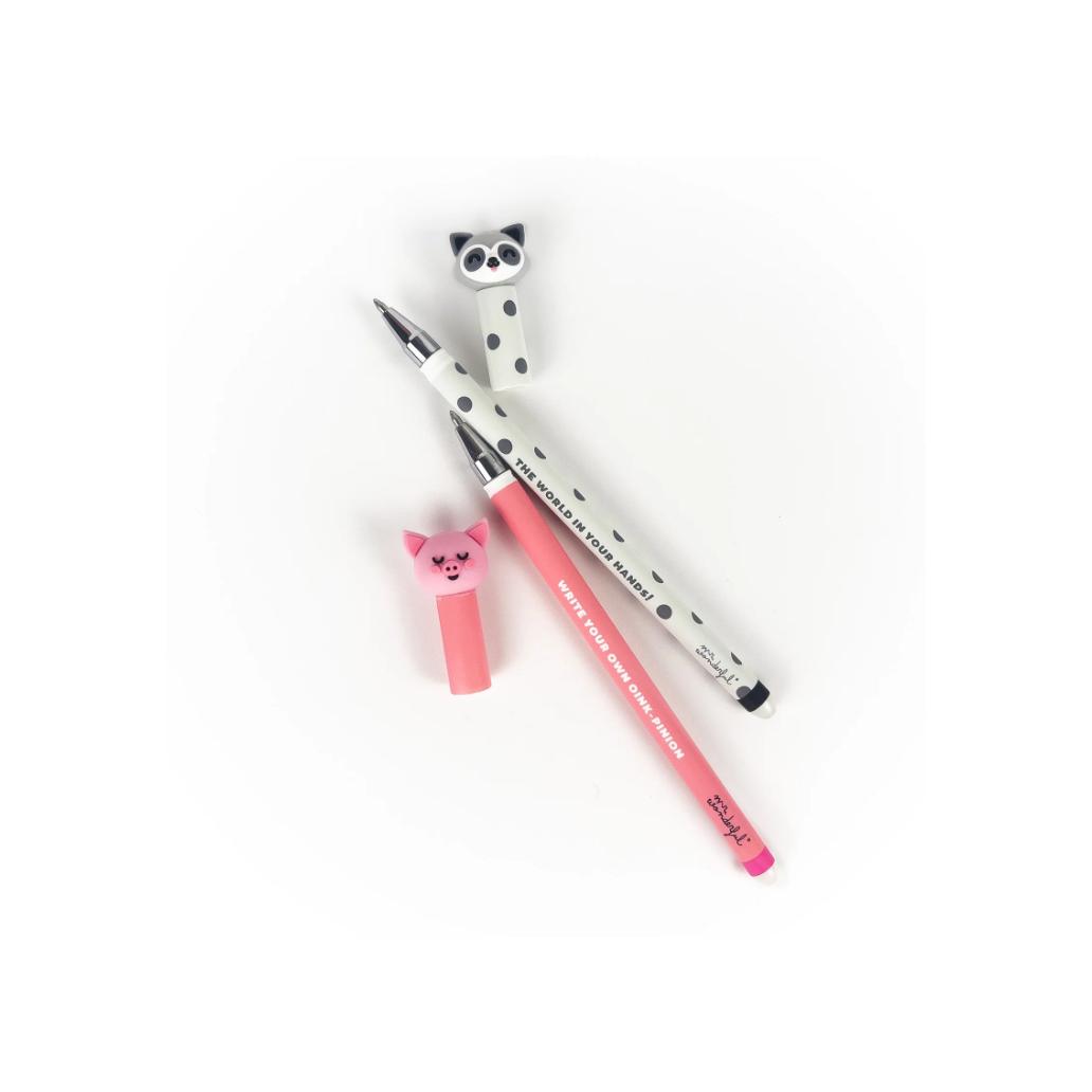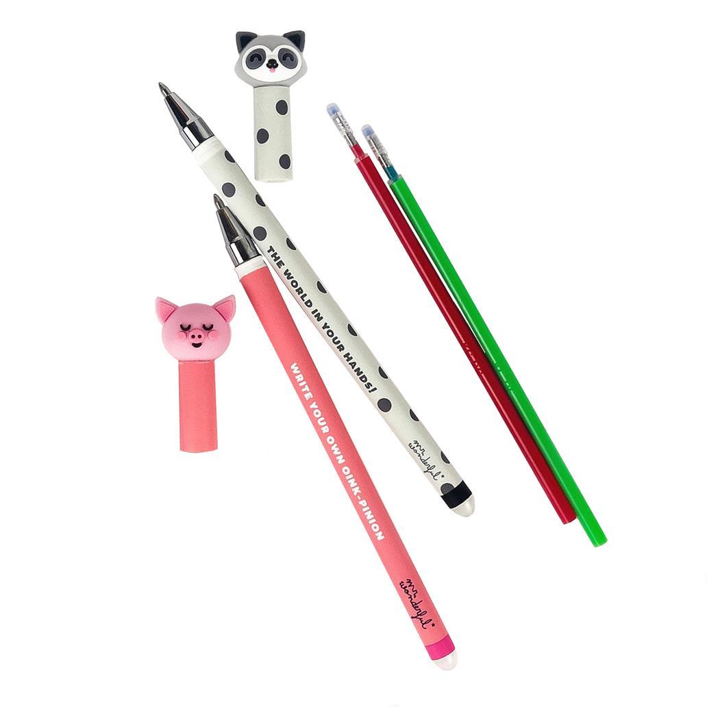 Conjunto 2 Canetas Apagáveis Porco e Guaxinim – Mr. Wonderful