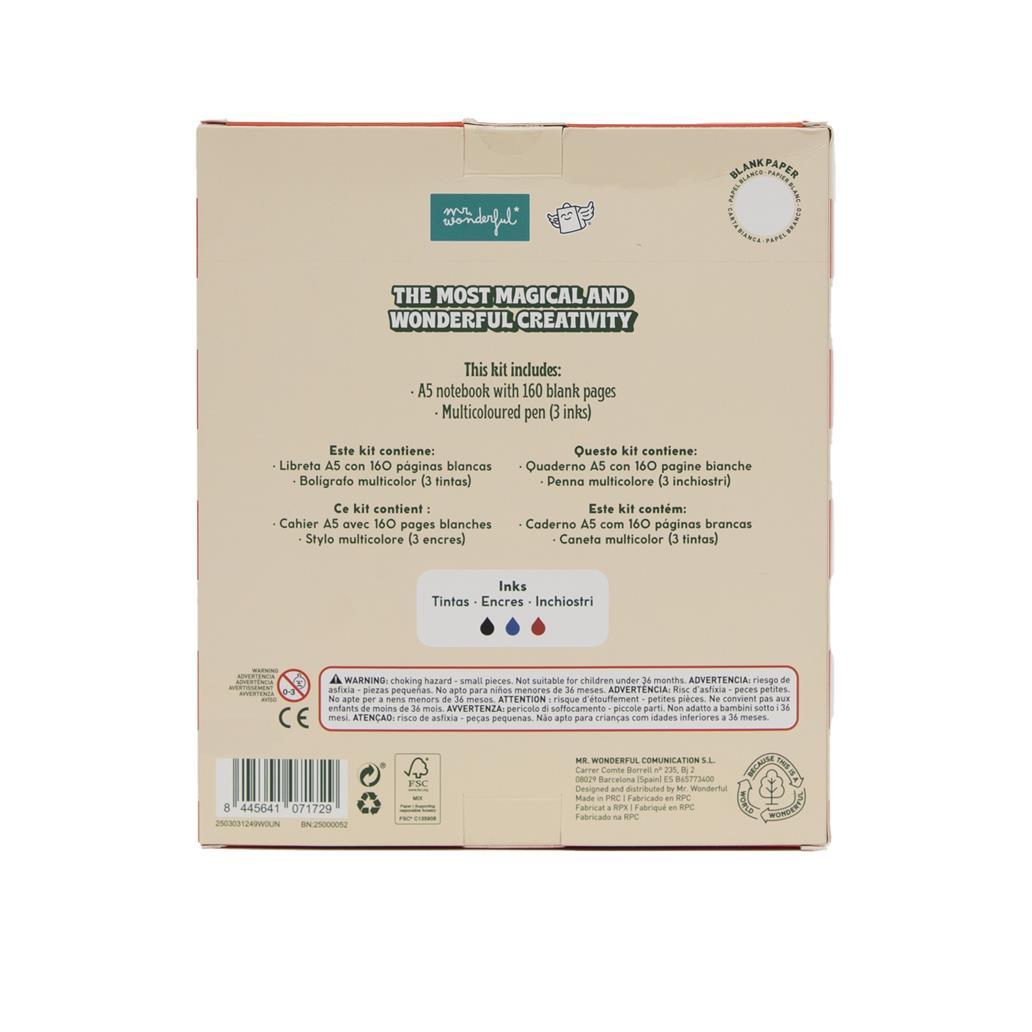 Conjunto caderno A5 fofinho + esferográfica multicolorida - Rena
