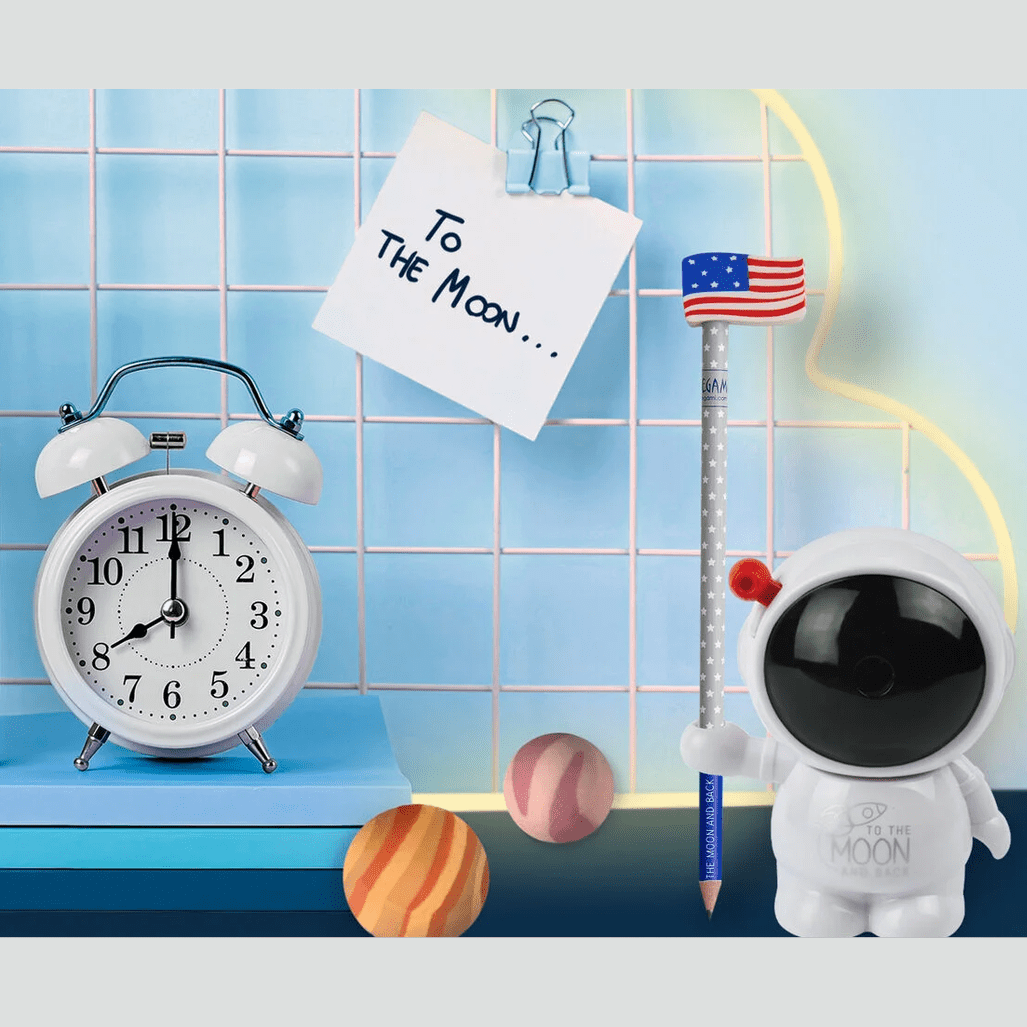 Celebre a histórica chegada à Lua todos os dias com o conjunto de papelaria Legami To The Moon and Back. Composto por um lápis HB, uma borracha com a bandeira americana que pode ser fixada na ponta do lápis e uma borracha de astronauta, este conjunto levará as suas notas até ao infinito e mais além.