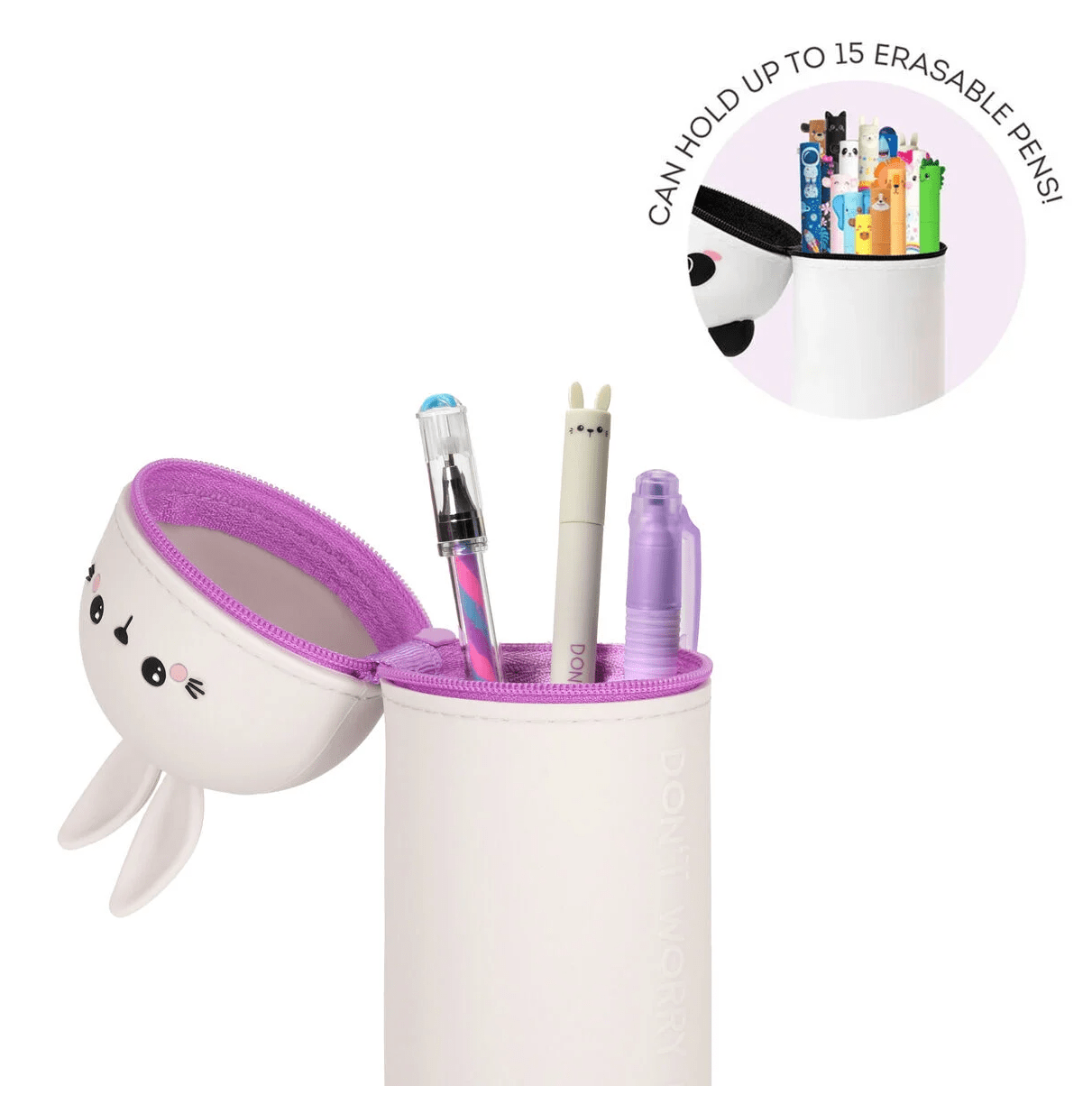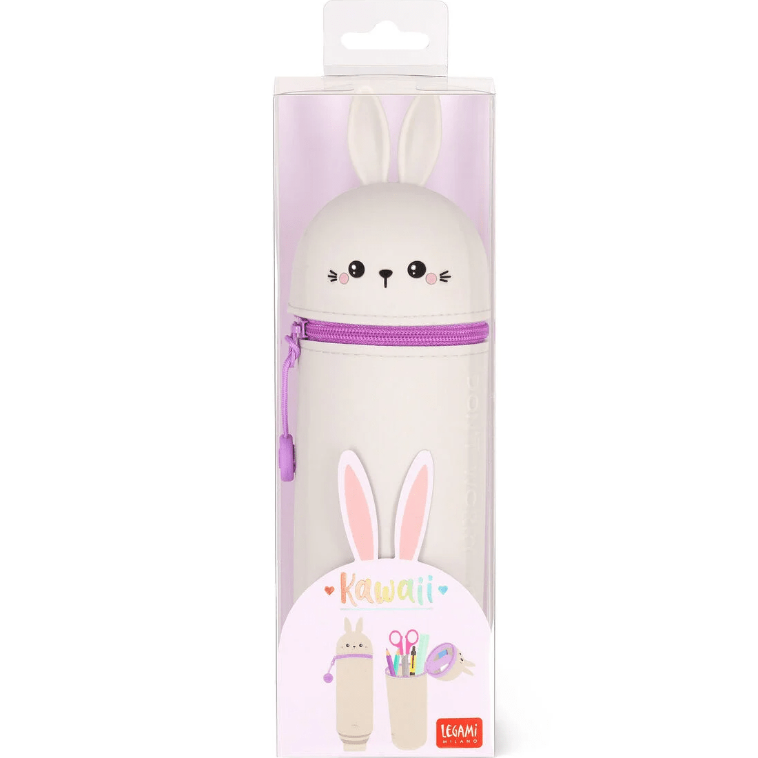 Fique giro com o estojo de silicone macio Legami 2 em 1 - Kawaii - Bunny. Esta mochila escolar essencial tem dupla utilização como estojo e porta-canetas devido ao seu design inteligente, função retrátil e toque suave. Portanto, não há desculpa para não fazer os trabalhos de casa.
