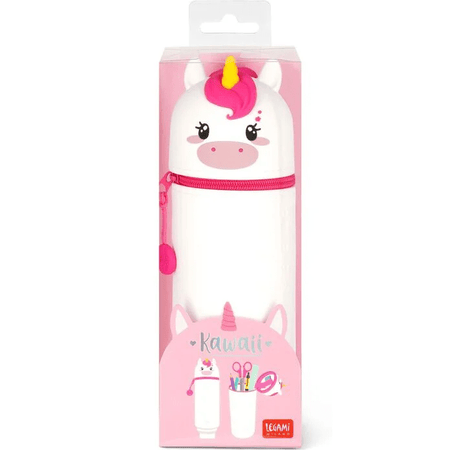 Fique giro com o Estojo de Lápis de Silicone Macio Legami 2 em 1 - Kawaii - Unicórnio. Esta mochila escolar essencial tem dupla utilização como estojo e porta-canetas devido ao seu design inteligente, função retrátil e toque suave. Portanto, não há desculpa para não fazer os trabalhos de casa.