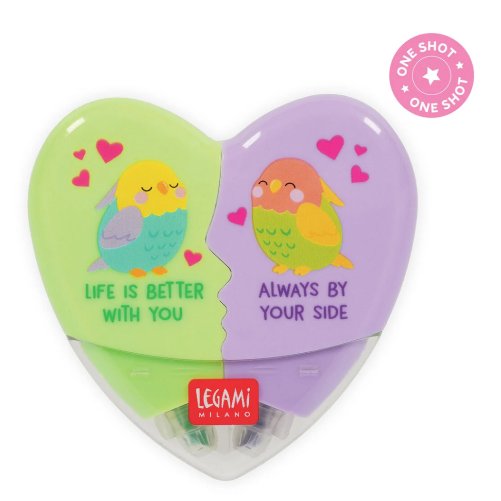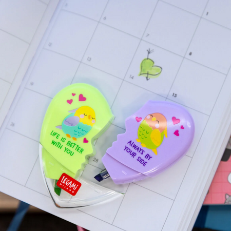 Quando se está apaixonado, quer-se que o mundo inteiro saiba! Envie uma mensagem inesquecível com o marcador de texto 2 em 1 de edição limitada - Heartlighter da Legami: o formato de coração divide-se em dois para que possa destacar os seus sentimentos. Mas não se preocupe, não deixará um coração partido para trás: é fácil voltar a juntá-los num coração inteiro que bate apenas para aquela pessoa especial.
