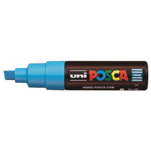 O Marcador Uni Posca 8K é a ferramenta perfeita para cobrir grandes superfícies de forma rápida, uniforme e com cores vibrantes. Com a sua ponta larga biselada de 8 mm, o Posca 8K é ideal para trabalhos de arte, sinalética, decoração de montras, murais e personalização de objetos de grandes dimensões.
