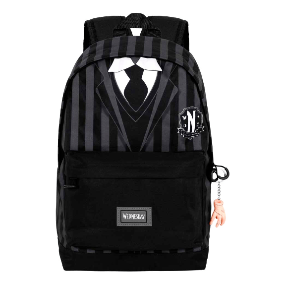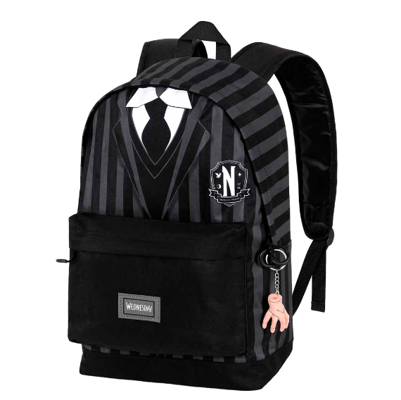 Apresentamos a nossa versátil e elegante mochila Wednesday 41cm! Esta bolsa multifuncional é perfeita para qualquer ocasião, quer vá para a escola, para o trabalho ou para uma aventura de fim de semana. Feita com materiais de alta qualidade, esta mochila é durável e construída para durar. O espaçoso compartimento principal pode acomodar facilmente todos os seus artigos essenciais, enquanto o bolso frontal oferece fácil acesso a artigos mais pequenos. As alças ajustáveis garantem um ajuste confortável para todos os tipos de corpo. Além disso, o design moderno de Wednesday Addams da Família Addams vai fazer com que se destaque na multidão. Não perca este acessório indispensável para qualquer fã!