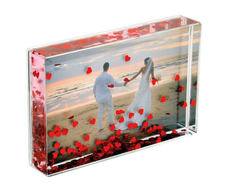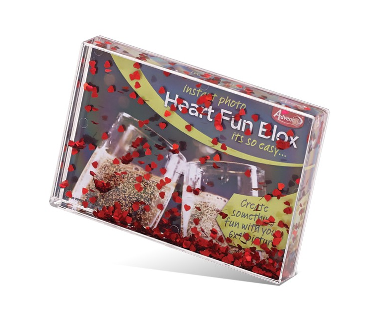 Nós adoramos... Corações de pura diversão!... Personalize sua foto, impressão ou imagem e crie um presente maravilhoso com o Bloco de Acrílico para Fotos Heartblox da Adventa.