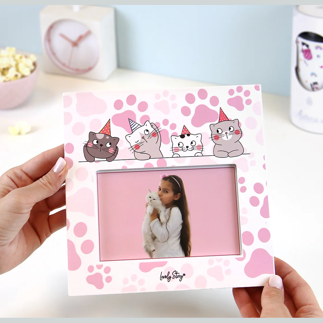 A Moldura de Madeira Gatos Kitty World é a escolha ideal para quem quer decorar com estilo e dar destaque às suas memórias mais especiais com um toque único e encantador.