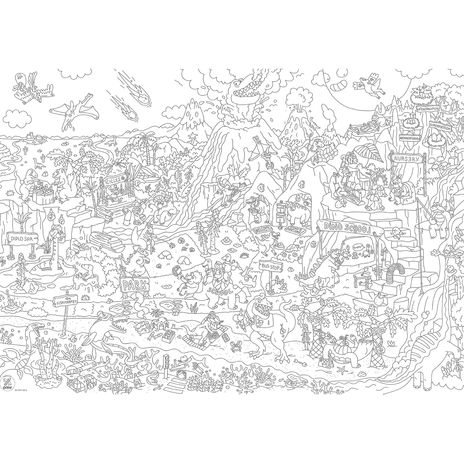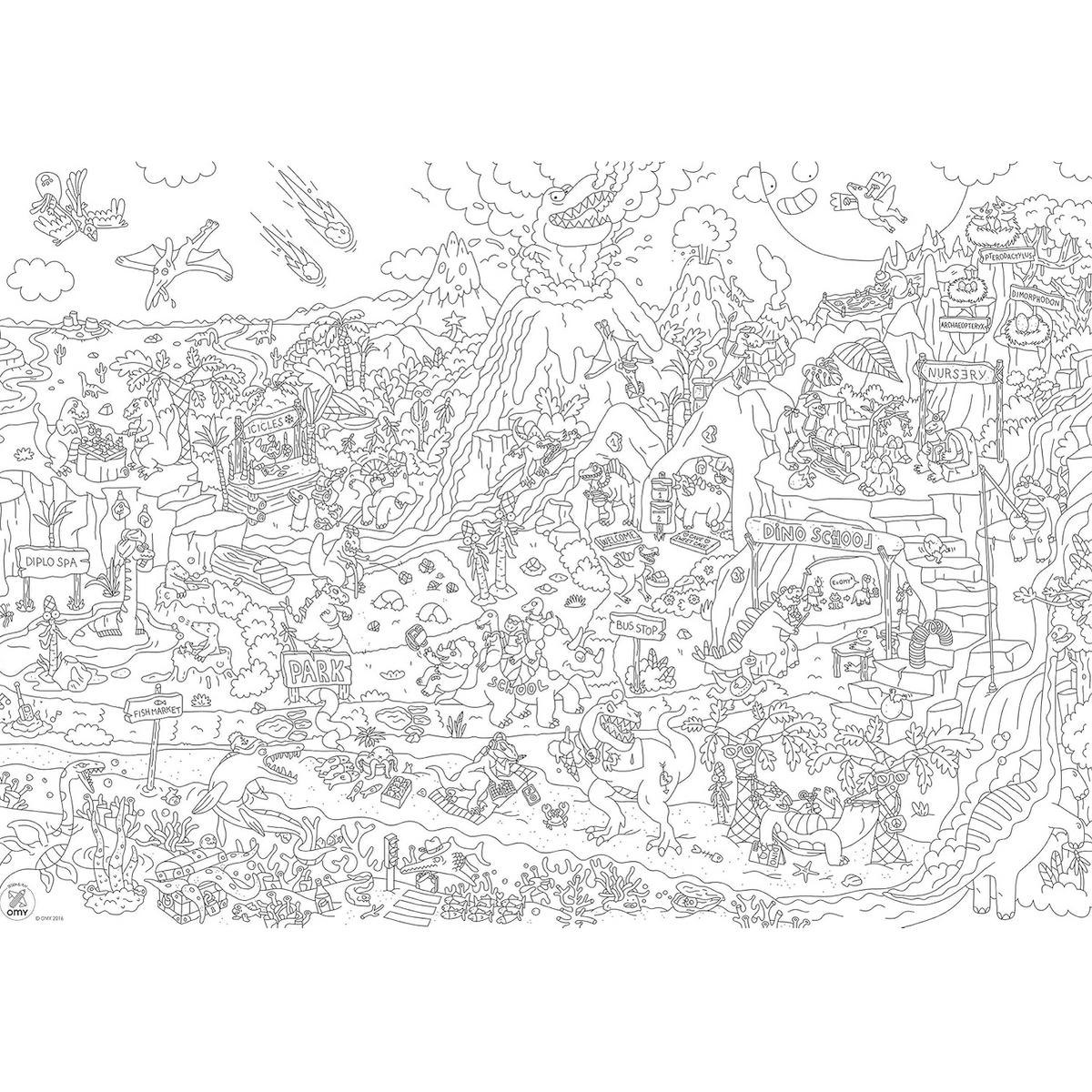 O Poster Gigante para Colorir OMY Dinos é perfeito para transformar qualquer momento num verdadeiro mundo de aventura pré-histórica cheio de cor.