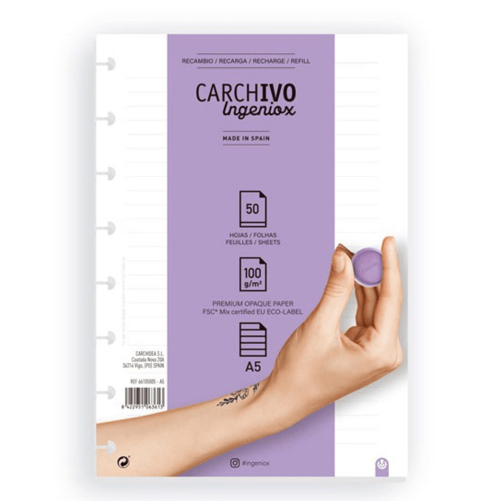 Recarga A5 P/Caderno Ingeniox Pautado 50fl