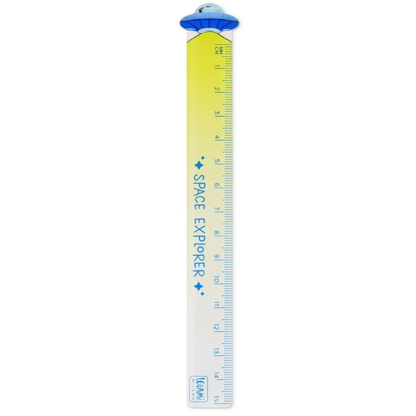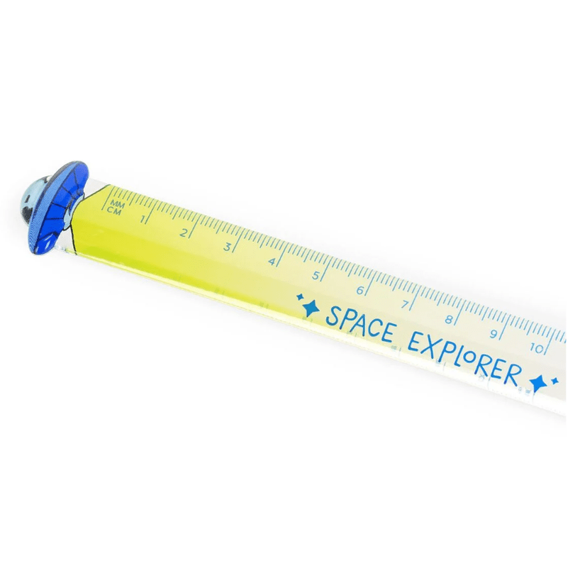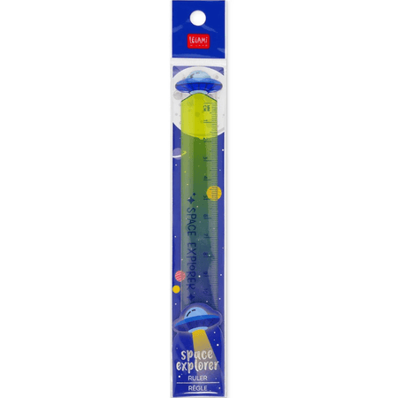 Quantos metros tem um ano-luz? Descubra, 15 centímetros de cada vez com a Régua Legami - Explorador Espacial. É muito mais do que apenas uma régua padronizada: esta ferramenta de plástico cravejada de estrelas permite-lhe medir distâncias, alturas e hipotenusas, para se preparar para a sua próxima viagem ao espaço exterior ou projetar a sua escapadela galáctica. Graças às suas medidas compactas, é perfeito para a sua capa.
