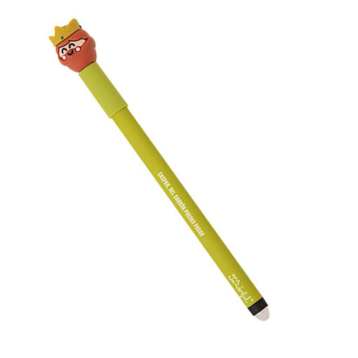 - O corpo da caneta tem um toque muito suave e inclui uma borracha na extremidade oposta à da personagem que permite apagar de forma rápida e simples o que já foi escrito.