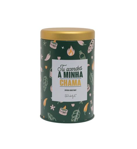 Vela aromática fabricada em cera vegetal. Apresenta-se dentro de uma embalagem metálica com tampa onde se encontra a mensagem da vela. Aroma: Spiced chestnut Indicações: manter uma distância mínima de 10 cm entre duas velas acesas. Não deixar a vela acesa sem supervisão. Manter afastada de crianças e animais de estimação. Acender durante no mínimo 10 minutos para assegurar uma correta difusão do aroma e no máximo durante 2 horas por questões de segurança. Manter afastada de objetos inflamáveis.